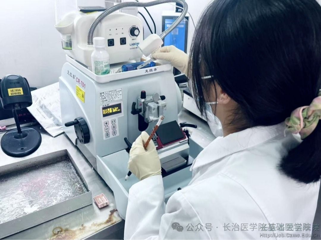 在北京大学第三医院病理科的实验室里,总有一个身影在显微镜与标本间穿梭。她手持切片刀精准操作,用双眼捕捉细胞的细微变化,默默守护着病理诊断的“第一道关”。这位沉稳细致的年轻技师,正是我校基础医学院医学实验技术专业2021届毕业生祁文嫣。从长医课堂到国内顶尖医院的诊疗一线,她以校训为精神坐标,以专业为立身之本,用四年坚守与深耕,在病理技术岗位上书写着“重基础、强实践、肯奉献”的青春答卷,成为我校育人成效的生动注脚。