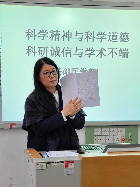 梁建君将巡察组提出的“三个聚焦三个推动”方面存在的十二个突出问题进行了反馈,并就如何做好下一步整改落实工作提出具体要求。针对反馈意见中指出的部分问题,立行立改。对于提到的“将课程思政融入课堂育人方面效果有待提高”的问题,邀请基础医学部副主任张雄鹰、寄生虫教研室主任刘明社和物理教研室教师赵彩霞做了课程思政经验分享,与在座教师共同探讨课程思政的有效开展方式;对于“改革创新精气神不足”、“科研工作实力不强”等问题,基础医学部副主任李晨分享了自己多年来在科研工作方面的心得,并强调了学术诚信的重要性。