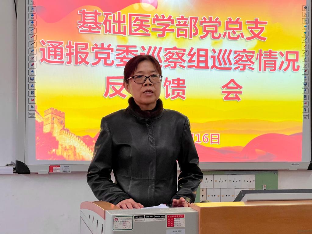 根据党委巡察工作部署要求,11月16日下午,基础医学部党总支召开党委第二轮巡察情况反馈会,传达党委第一巡察组的反馈意见及整改要求。基础医学部党政领导及全体教职工参加会议。会议由党总支书记梁建君主持。
