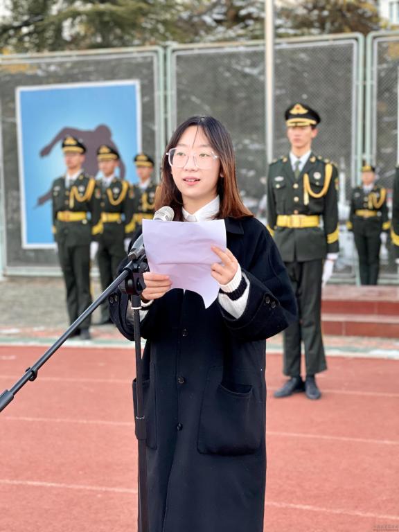 学生代表郝奕楠在国旗下进行了发言。实现中华民族伟大复兴取决于一代代人的接续奋斗,时间与历史将选择站在奋进者一边。身为医学生的我们,要合理规划职业生涯,以习近平总书记为榜样,踊跃到基层、到祖国和人民最需要的地方去建功立业,把自己锻炼成为堪当民族复兴大任的新人,在时代的洪流中,扎根祖国大地,谱写胸有大志、心有大我、肩有大任、行有大德的大写青春。
