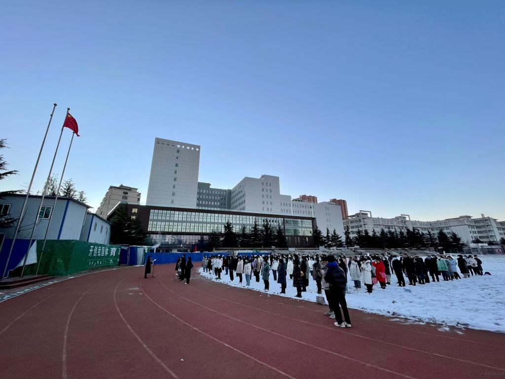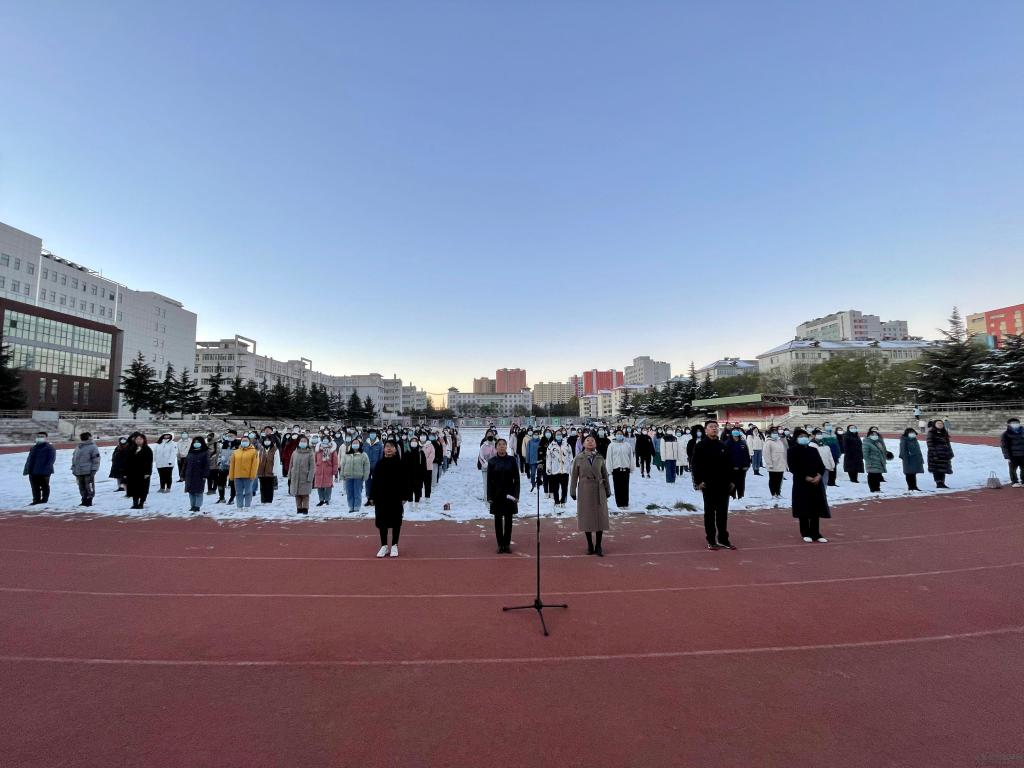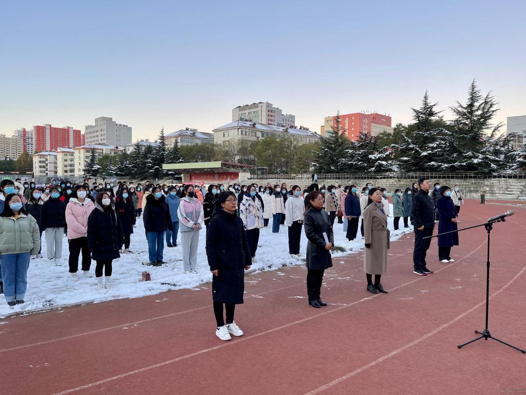 秋叶未尽,冬雪已至。国旗护卫队踏着铿锵有力的步伐,迎着朝阳,护送国旗入场,伴随着庄严的义勇军进行曲,全体师生注视着国旗冉冉升起。