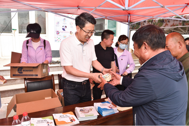 按照山西省药监局药品科技活动周统一安排,为弘扬优良传统,传承红色基因,引深党史学习教育“我为群众办实事”,6月9日,长治医学院围绕“药品安全 红色领航”主题,组织开展“优质医药平顺行”活动,由党委书记李华荣、党委常委、副校长王金胜带队,率附属和济医院医疗团队、药学系师生,到帮扶村——平顺县东寺头乡寺头村和神龙湾村,深入开展药学服务,推动药品科学普及惠民利民。